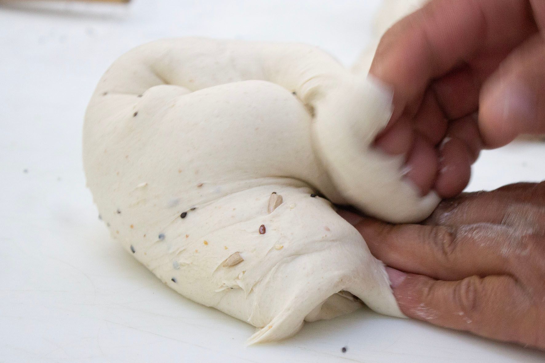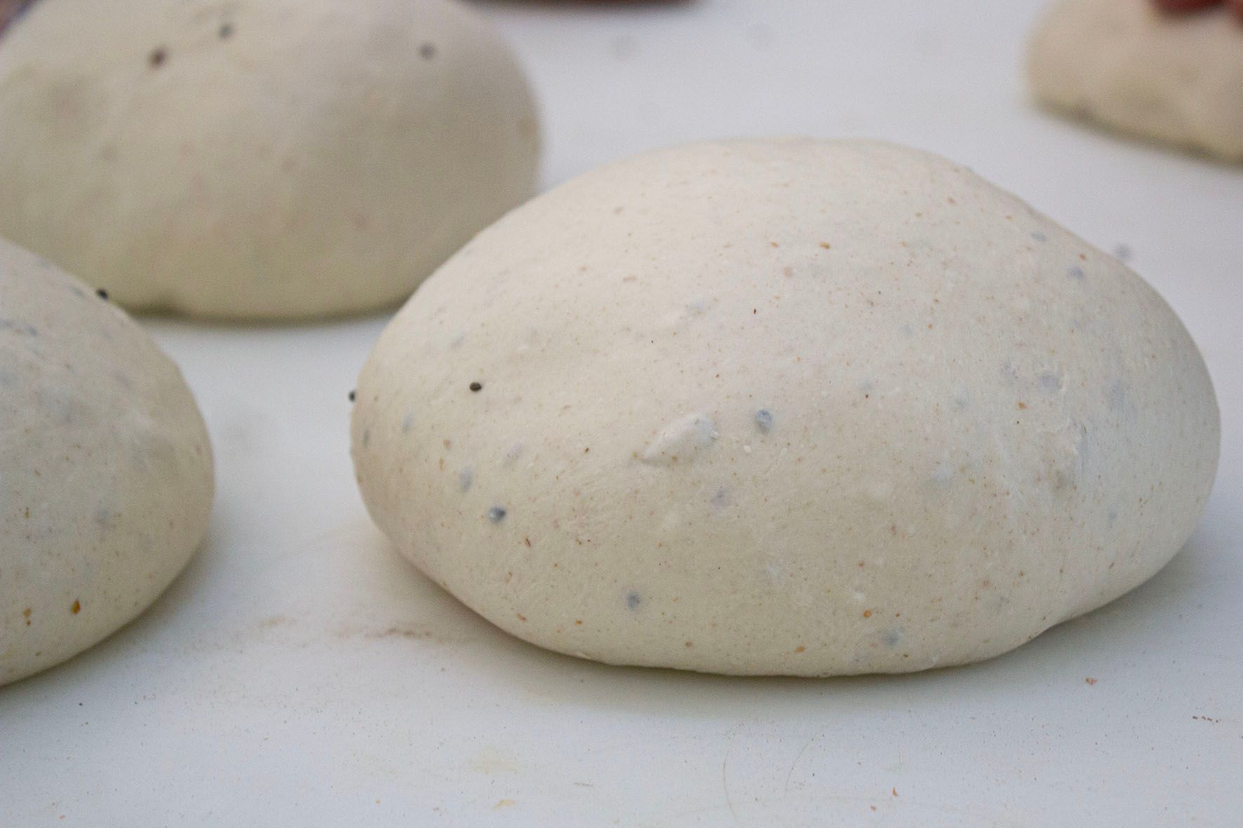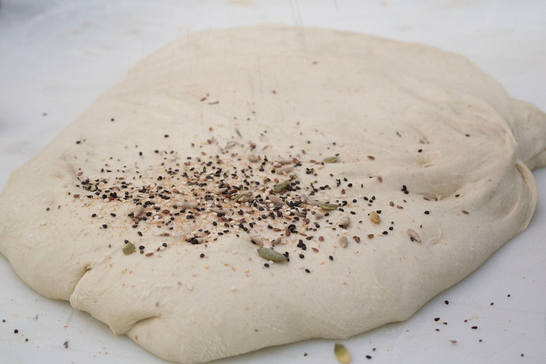 2. Agregar la mitad del mix de semillas a la masa y pesar tantos de 500 g c/u.